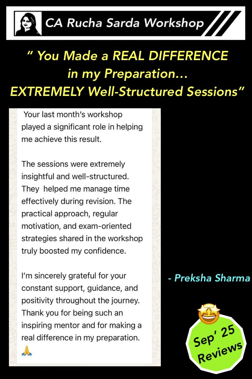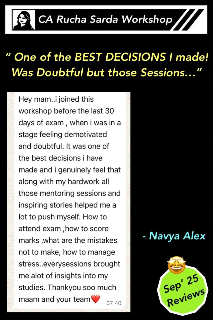 She also runs a Youtube channel under the name: CA Rucha Sarda, through which she motivates and guides CA students to excel in their career. Over 85000 students have subscribed to the channel and are benefiting out of it immensely. She didn’t stop here. Her dedication to help CA Students in every possible manner made her launch Personal Counselling programmes. Till date, she has mentored over 10000 students over Phone and Email.